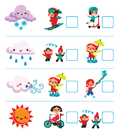 به تصویرها نگاه کن و کنار فعالیتی که احتمالا در آن آب و هوا انتخاب میکنی، علامت بزن.