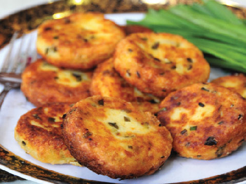 سیب زمینیها را بپزید و پوره كنید. آن گاه پورة سیب زمینی، پیاز، تره، پنیر، تخممرغ، نمك و فلفل را در ظرف مناسبی بریزید و خوب مخلوط كنید. حالا در تابه مناسبی، روغن بریزید و روی اجاق داغ كنید. سپس دستتان را درون آرد بزنید و هر بار قدری از مایة كتلت را بردارید و به شكل توپ بزرگی درآورید. رویش را اندكی تخت كنید و دوطرفش را در روغن سرخ نمائید. اكنون كتلت سیبزمینی را در ظرف مناسبی بچینید.