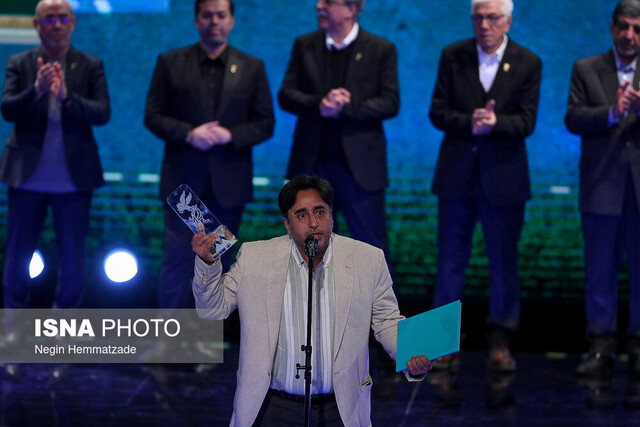 رضا جمالی پس از دریافت جایزهاش گفت: از تک تک عوامل فیلم «سونسوز» تشکر میکنم، مخصوصا همسرم که شبانهروز کنار من بود.