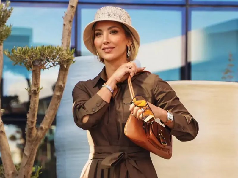 او در این تصاویر با کلاه باکت روشن، پیراهن قهوه‌ای بلند و عینک آفتابی رنگی دیده می‌شود که مورد توجه قرار گرفته است.