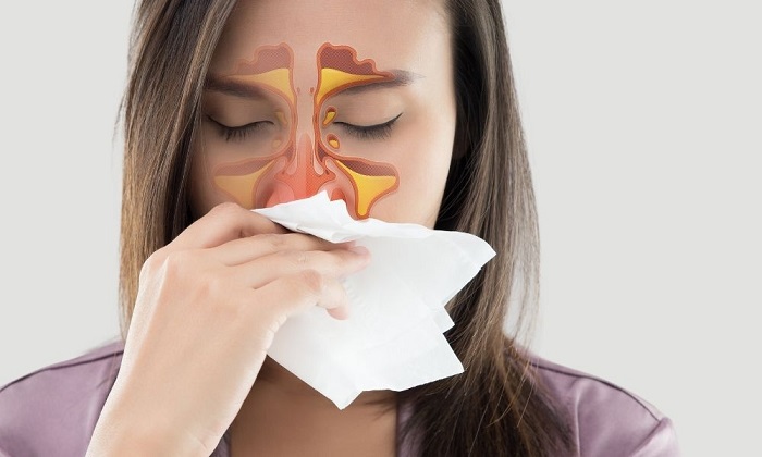 مهمترین علائم سینوزیت درد پیشانی و صورت، کاهش حس بویایی، گرفتگی بینی، ترشحات سبز رنگ بینی، احساس پری و سنگینی صورت و تب بالای ۳۸.۵ درجه است.