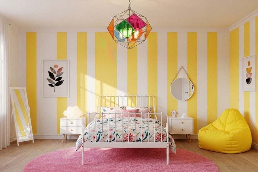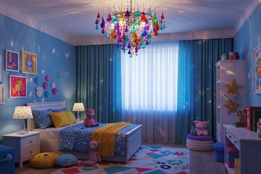 3. لوستر آویز رنگی: اگر میخواهید اتاق دخترانه شاد و جوانپسند باشد، لوسترهای آویز رنگی با کریستالهای کوچک یا شیشههای رنگی گزینه مناسبی هستند. این مدلها هم نور کافی فراهم میکنند و هم به زیبایی اتاق کمک میکنند.