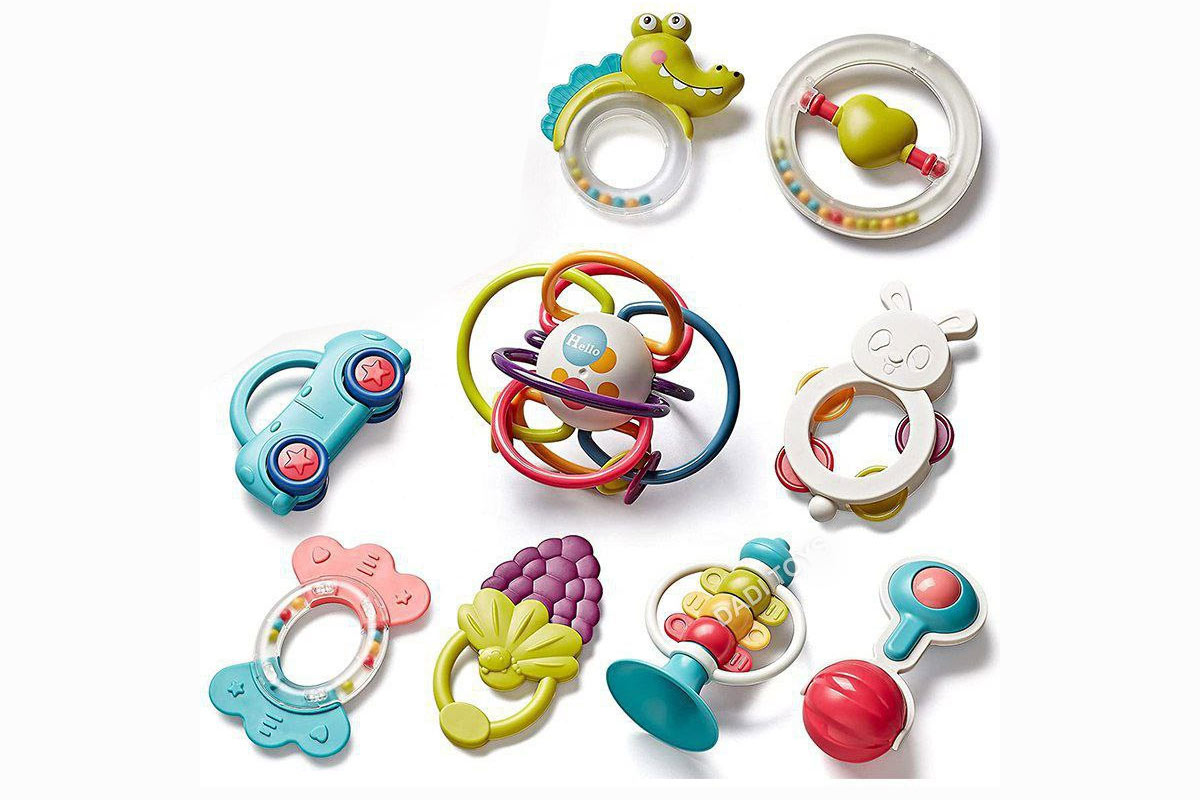 - جغجغهها و اسباببازیهای حسی پلاستیکی (فاقد مواد بازیافتی): برندهای پیشرو در این حوزه، از پلاستیکهای نو و غیر بازیافتی استفاده میکنند که در اثر بزاق دهان، هیچگونه گاز یا ماده سمی آزاد نمیکنند.